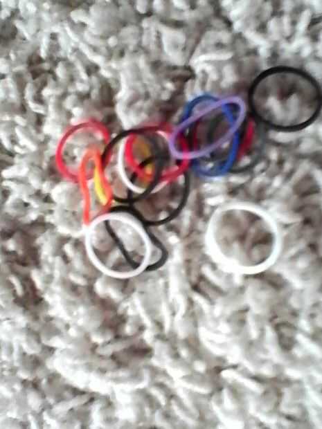 Paso 1: materiales: Necesita...Un kit de telar del arco irisBandas de gomaGancho telar de arco irisClip C o S clip :)Paso 2: Hacer la pulsera: Tomar una banda elástica y tuérzalo alrededor de dos clavijas que telar.Paso 3: Una vez que tengas la goma