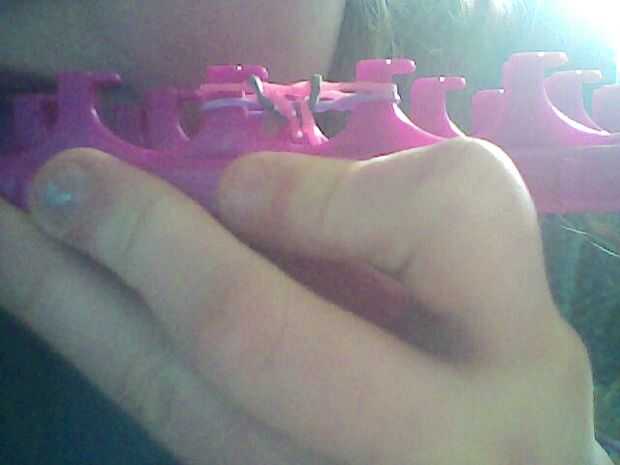 hoy voy a mostrarte cómo hacer un invertido espina de pescado cruzado en el telar del arco iris.Paso 1: No sé cuántas bandas usé pero necesito 1 c clip.Paso 1 el telar debe ser recto y una x pero hacer una figura 8.Paso 2: Paso 2 Añadir 3 no capas fu
