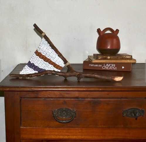 Hace unos años veo en alguna parte uno de este '' telar de palo '', y decidí hacer uno. Generalmente se hacen con hilo super colorido, pero decidí hacerlo con cuero.