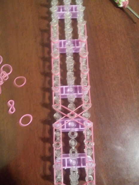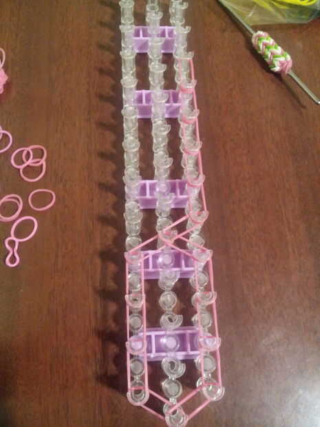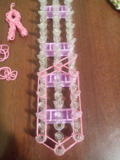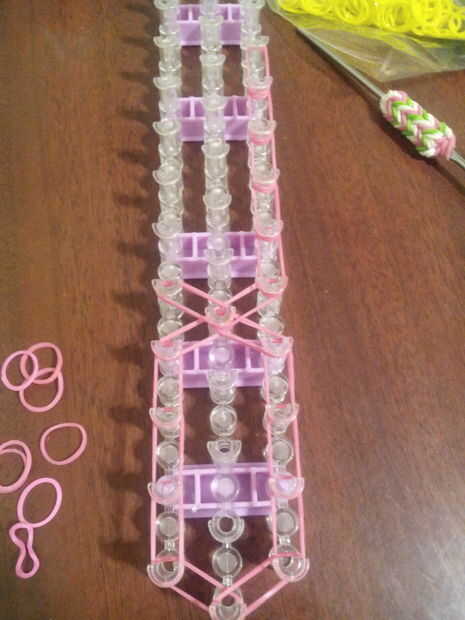 1 usted estará poniendo bandas dobles de la clavija central en la clavija superior de la derecha.