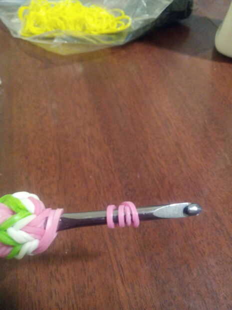 2 tomar su gancho y envolver una venda alrededor de 3 veces para hacer cuatro bucles y debería ser mi segunda foto.