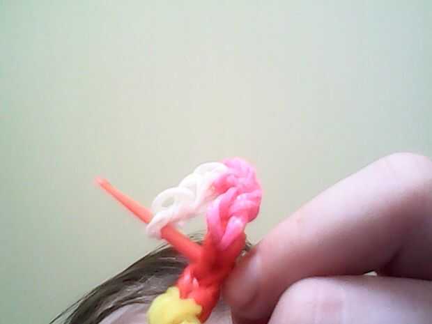 ahora somos casi stickyour gancho en segundo de la segunda fila y empújelo sobre el blanco