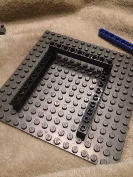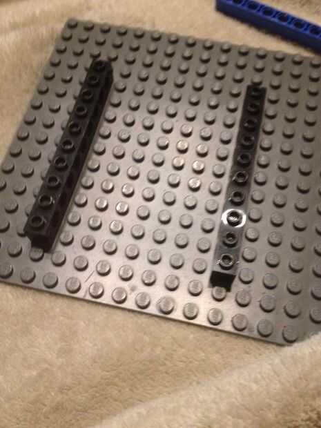 poner los 10 postes de ladrillo largo clavos 7 aparte y luego ponga el plano 9 largo en los postes como en el cuadro después todos en 1 stud aparte