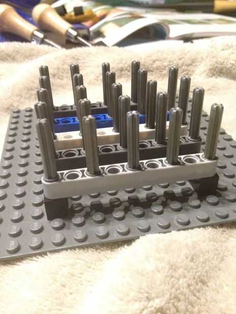 Mi hermanita le encanta su telar del arco iris y haciendo pulseras y cosas en su telar. Tiene una caja llena de bandas de colores. Miré a su telar y parece bastante sencillo así que decidí construir mi propio telar de K'NEX piezas. He intentado hacer