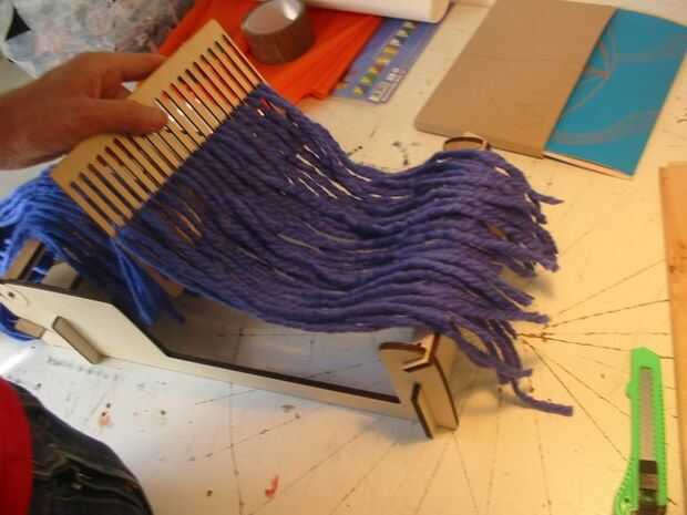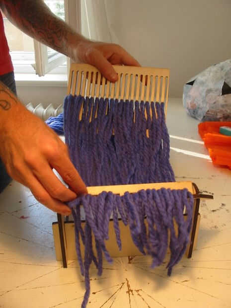 Medir a las cuarenta variedades de hilo que tejer y obtener a través de las ranuras y agujeros en la pieza de la malla de lizo (que pedazo de parrilla rad). Experiencia anterior con mi telar de cintura láser es útil.