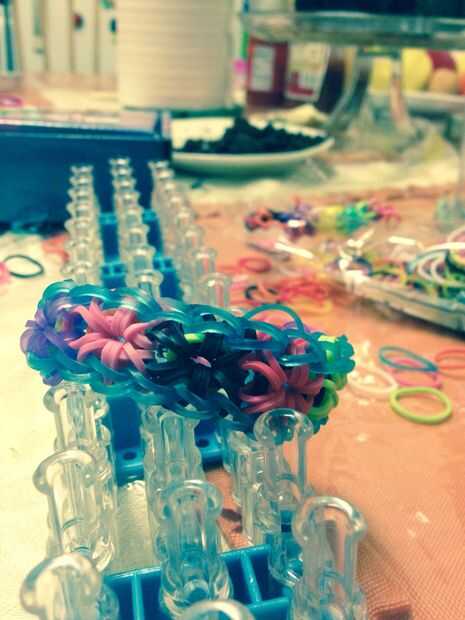Paso 1: fuentes de Necesita el telar, el gancho, bandas del arco iris y un clip c o s.Paso 2: Colocar las bandas Get ready. Este es un gran paso. Comience colocando su primera banda de color desde el pasador central a la patilla izquierda. Luego, con