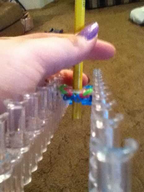 Paso 1: fuentes de Necesita un kit de inicio para el telar del arco iris y algunas elásticas.Paso 2: Colocar las bandas Iniciar colocando un color de borde y no empezar a poner encima de todo lo que tienes que hacer en los patrones.Paso 3: Colocar la