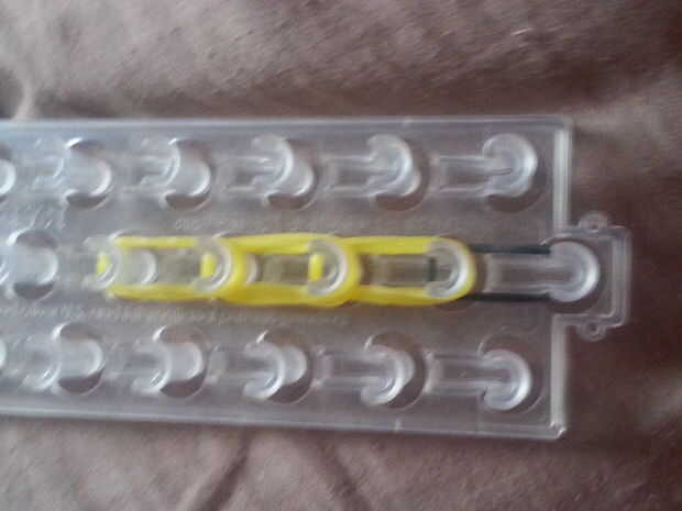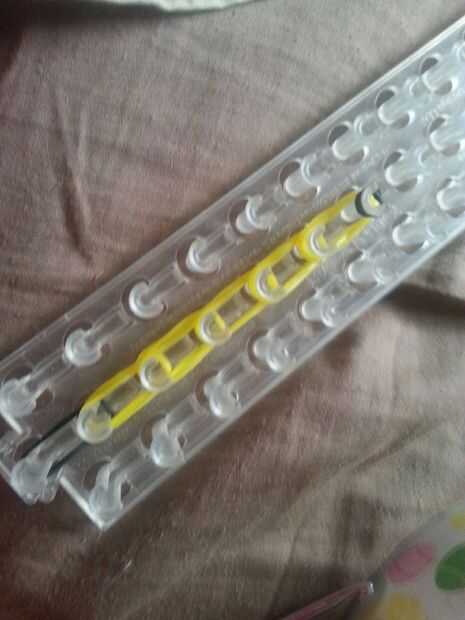 Coloque una banda negra de primera clavija a next.grab un conjunto de bandas amarillo continuar hasta quedan una banda negra.
