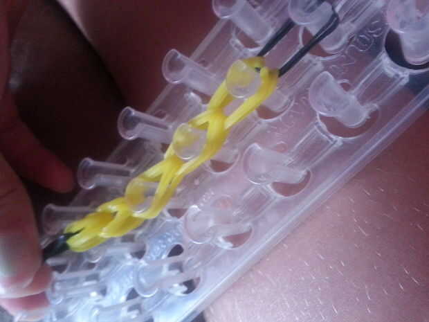 Paso 1: fuentes de Necesita un kit de inicio para el telar del arco iris y algunas elásticas.Paso 2: Colocar las bandas Iniciar colocando un color de borde y no empezar a poner encima de todo lo que tienes que hacer en los patrones.Paso 3: Colocar la