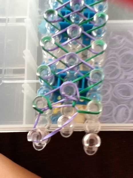 Paso 1: fuentes de Necesita un kit de inicio para el telar del arco iris y algunas elásticas.Paso 2: Colocar las bandas Iniciar colocando un color de borde y no empezar a poner encima de todo lo que tienes que hacer en los patrones.Paso 3: Colocar la