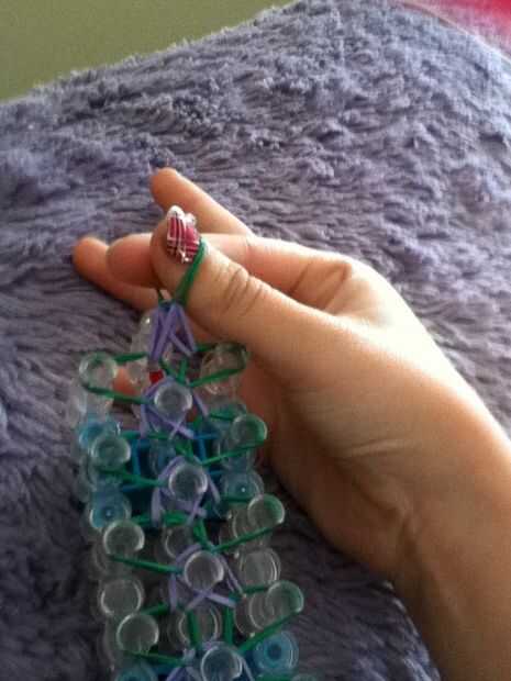 Paso 1: fuentes de Necesita un kit de inicio para el telar del arco iris y algunas elásticas.Paso 2: Colocar las bandas Iniciar colocando un color de borde y no empezar a poner encima de todo lo que tienes que hacer en los patrones.Paso 3: Colocar la