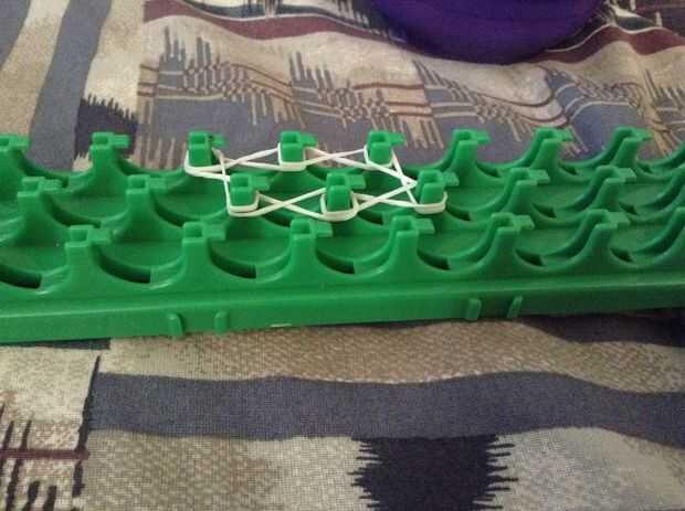 Paso 1: fuentes de Necesita un kit de inicio para el telar del arco iris y algunas elásticas.Paso 2: Colocar las bandas Iniciar colocando un color de borde y no empezar a poner encima de todo lo que tienes que hacer en los patrones.Paso 3: Colocar la