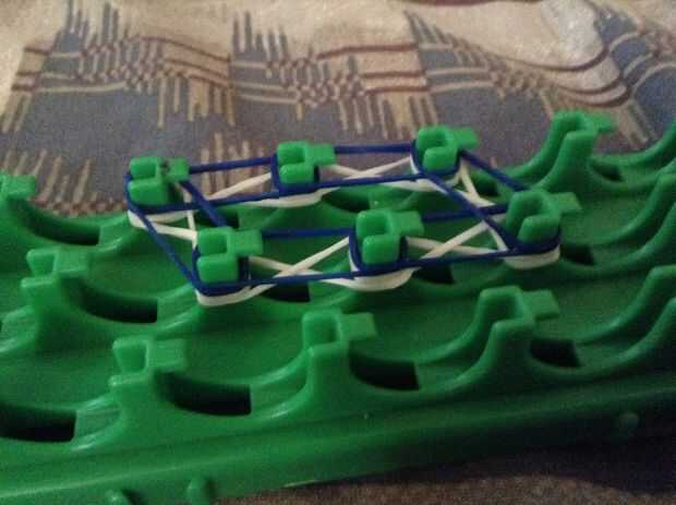 Paso 1: fuentes de Necesita un kit de inicio para el telar del arco iris y algunas elásticas.Paso 2: Colocar las bandas Iniciar colocando un color de borde y no empezar a poner encima de todo lo que tienes que hacer en los patrones.Paso 3: Colocar la