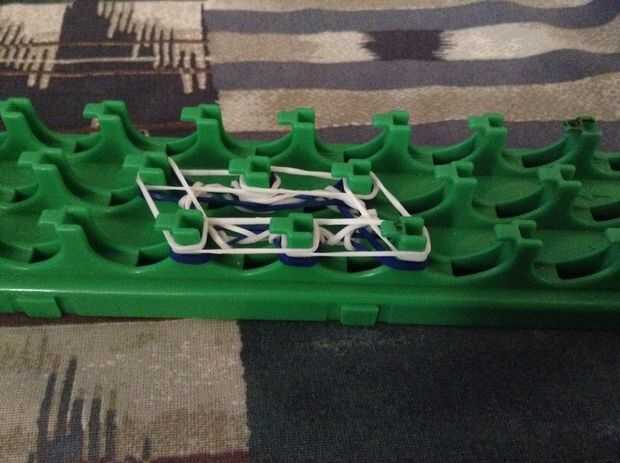 Paso 1: fuentes de Necesita un kit de inicio para el telar del arco iris y algunas elásticas.Paso 2: Colocar las bandas Iniciar colocando un color de borde y no empezar a poner encima de todo lo que tienes que hacer en los patrones.Paso 3: Colocar la