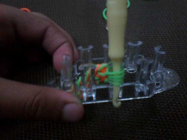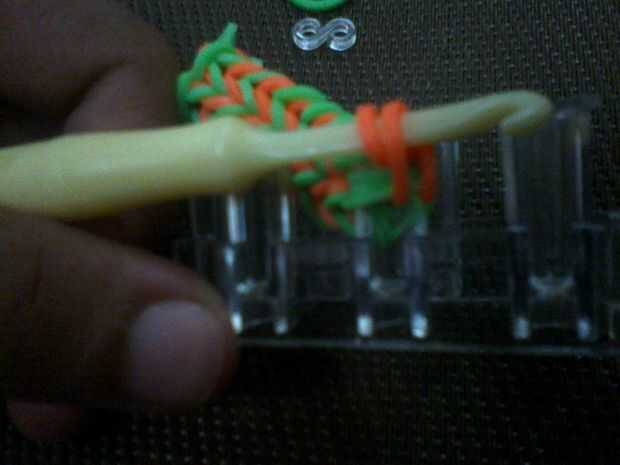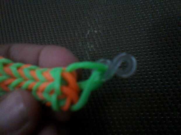 = > Agregar una banda de goma en el extremo del gancho y presione ambos extremos de su gancho