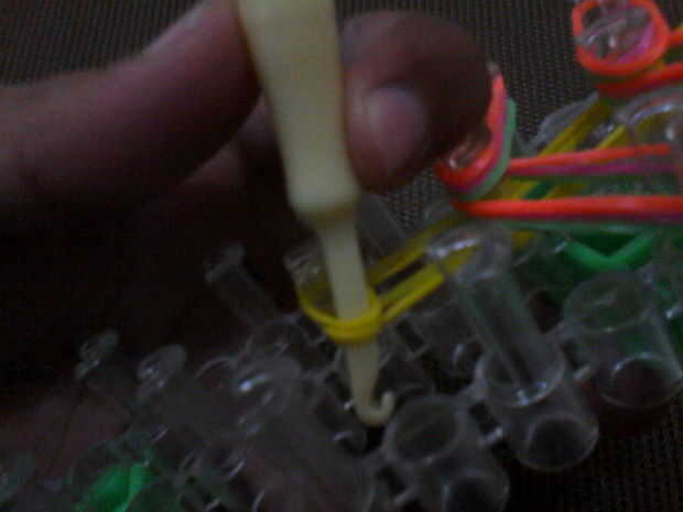 espero que todos disfruten mi primer instructables! Por favor dejar comentarios, preguntar y sugerir!Paso 1: fuentes de Usted necesita lo siguiente:· Telar del arco iris· Gancho· Bandas de gomaPaso 2: Colocar las gomas Empezar desde la parte inferior