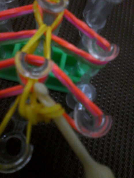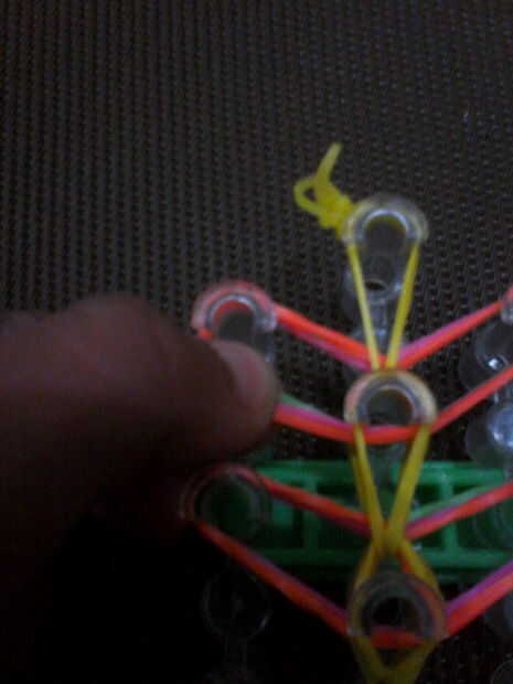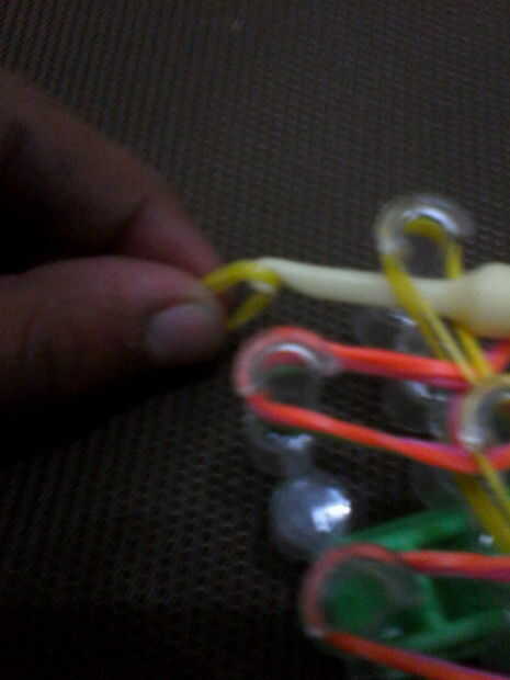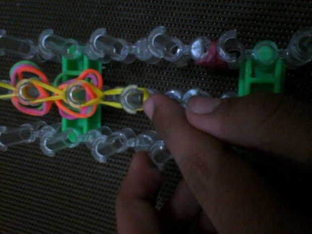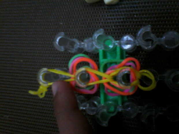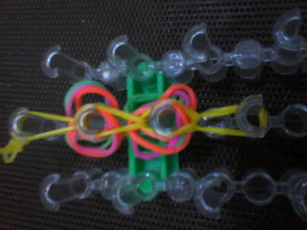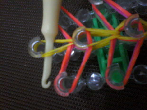 Pones dos bandas del cuerpo en el extremo y los cuatro extremos deben estar en el gancho.