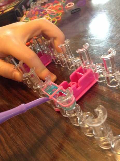 Gobierno-Gobierno es tu pulsera debe como cuando listo.Paso 1: Lo que usted necesitaUsted necesita un telar, bandas y un gancho.Paso 2: Empezando Hacer una figura de 8 con una banda y ponerlo en las 2 clavijas. Entonces puso dos bandas más en eso. po