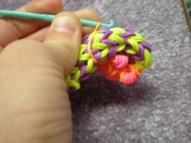 Haz a tu hugger del lápiz y el lazo en la parte superior hacia el gancho del crochet del hilo de rosca. Empujar todos los pétalos sobre el gancho y este bucle por lo que parece en la foto. Tomar el mismo bucle e hilo de rosca del hugger de lápiz a través de él.