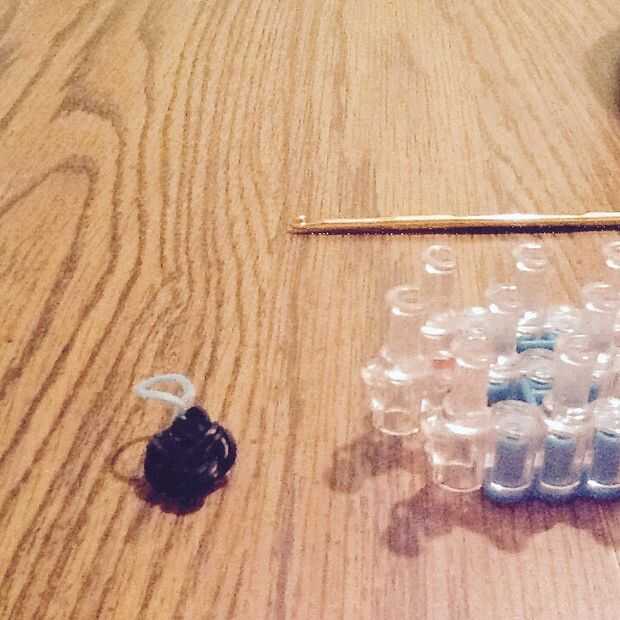 Antes de empezar el encanto real tenemos que empezar por hacer el pan que se sumarán en el encanto más adelante. Utilizar bandas doble (ver fotografías para pasos en hacer el bollo del pelo) la tapa y se envuelve alrededor de dos o tres veces. En el do del extremo un nudo del resbalón (utilice una banda que va a ser el color de la corbata de pelo) y tomar el pan del telar. Guardar para más tarde.