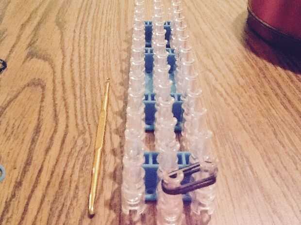 este es mi primer instructable diciéndote cómo hacer una pulsera de telar del arco iris triple.Paso 1: fuentes de Usted tendrá tablero de telar del arco iris, bandas y el gancho.Paso 2: Tres filas de bandas Poner tres filas en el telar como mostré ar