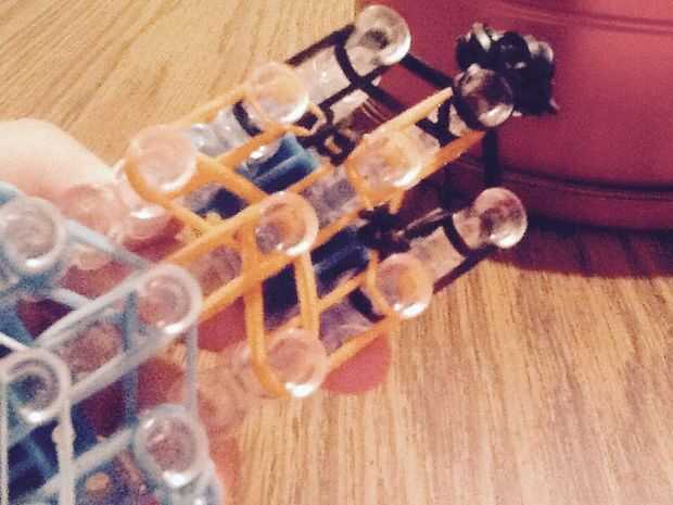 Paso 1: fuentes de Necesita un kit de inicio para el telar del arco iris y algunas elásticas.Paso 2: Colocar las bandas Iniciar colocando un color de borde y no empezar a poner encima de todo lo que tienes que hacer en los patrones.Paso 3: Colocar la