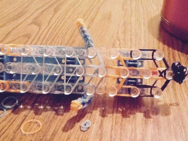 Antes de reserva tenemos que agregar bandas de sujeción. (Ver fotos). Puede Agregar los ojos. (Ver fotos) puede agregar bandas de casquillo en ambos pies y la última clavija de las bandas medianas (ver fotos)