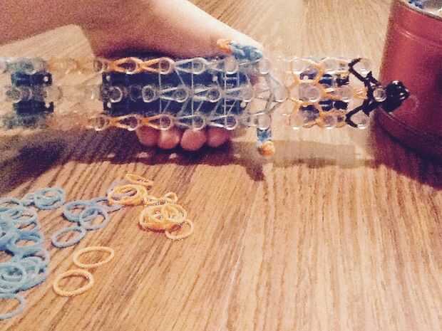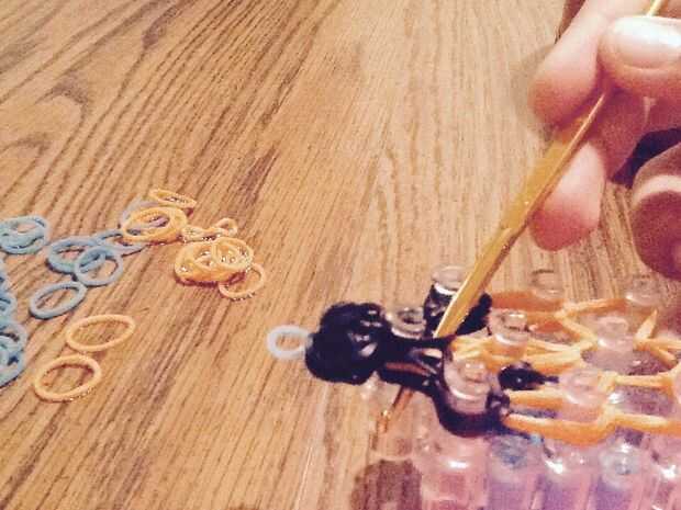 Paso 1: fuentes de Necesita un kit de inicio para el telar del arco iris y algunas elásticas.Paso 2: Colocar las bandas Iniciar colocando un color de borde y no empezar a poner encima de todo lo que tienes que hacer en los patrones.Paso 3: Colocar la