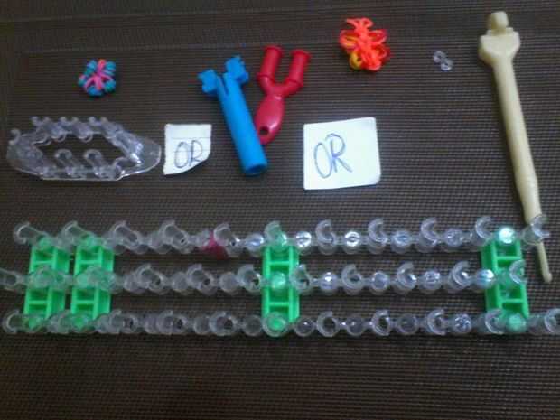 este es mi primer instructable diciéndote cómo hacer una pulsera de telar del arco iris triple.Paso 1: fuentes de Usted tendrá tablero de telar del arco iris, bandas y el gancho.Paso 2: Tres filas de bandas Poner tres filas en el telar como mostré ar