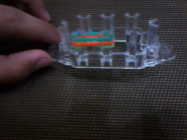 este es mi primer instructable diciéndote cómo hacer una pulsera de telar del arco iris triple.Paso 1: fuentes de Usted tendrá tablero de telar del arco iris, bandas y el gancho.Paso 2: Tres filas de bandas Poner tres filas en el telar como mostré ar