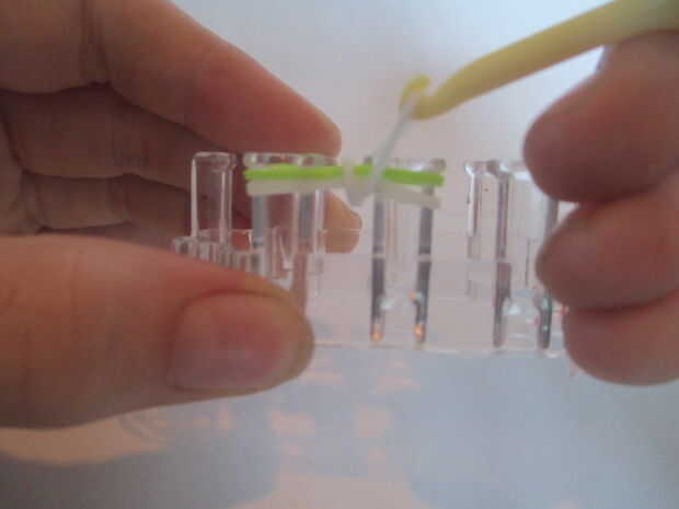 hoy voy a mostrar como hacer esta pulsera jardín color de rosa su super divertido y muy fácil. Sin más ado permite comenzar.Paso 1: materiales Necesita bandascualquier telarganchoclip de c o sPaso 2: Colocación de bandas primero tome una banda verde