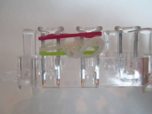 Paso 1: fuentes de Necesita un kit de inicio para el telar del arco iris y algunas elásticas.Paso 2: Colocar las bandas Iniciar colocando un color de borde y no empezar a poner encima de todo lo que tienes que hacer en los patrones.Paso 3: Colocar la