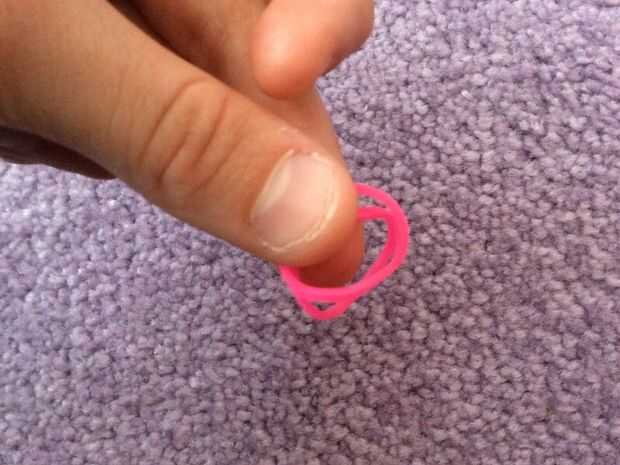 necesita: bandas de un telar del arco iris, un gancho y blanco y negro.Paso 1: Colocación de las bandas Lugar sus bandas en un principio como el triple solo paren en la clavija 4 y mover la banda hacia la derecha y luego haces una línea recta en el c