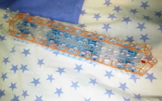 Paso 1: fuentes de Necesita un kit de inicio para el telar del arco iris y algunas elásticas.Paso 2: Colocar las bandas Iniciar colocando un color de borde y no empezar a poner encima de todo lo que tienes que hacer en los patrones.Paso 3: Colocar la