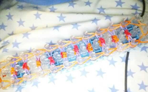 de hoy voy a mostrarte cómo hacer una pulsera de cable en el telar del arco iris es una pulsera de nivel intermediaria, pero a veces caen aparte pero no te enojes solo puede rehacerla solo te estoy dando este aviso ahora. cayó aparte en mí dos veces.