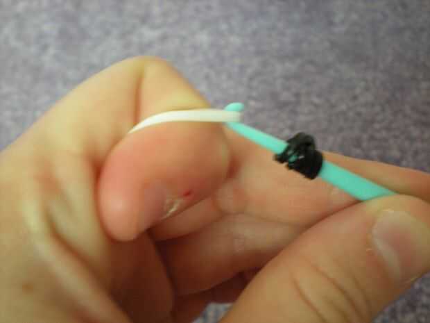 necesita: bandas de un telar del arco iris, un gancho y blanco y negro.Paso 1: Colocación de las bandas Lugar sus bandas en un principio como el triple solo paren en la clavija 4 y mover la banda hacia la derecha y luego haces una línea recta en el c