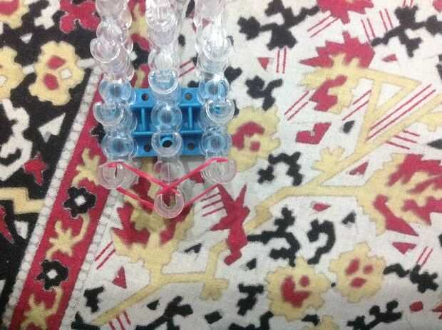 yaaPaso 1: Vas a necesitar:telar del arco irisGanchoBandasClip CPaso 2: Agarrar una banda y empieza de la clavija central en la clavija correcta, luego volver a la clavija media. Repita el proceso hasta que usted alcanza la parte superior.Paso 3:Dale