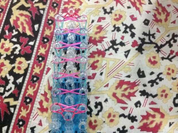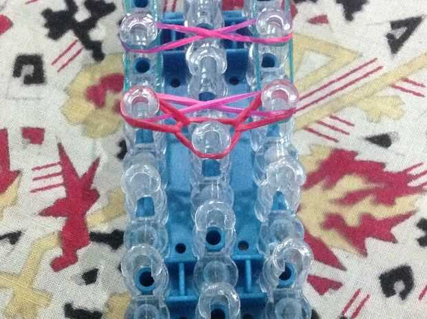 yaaPaso 1: Vas a necesitar:telar del arco irisGanchoBandasClip CPaso 2: Agarrar una banda y empieza de la clavija central en la clavija correcta, luego volver a la clavija media. Repita el proceso hasta que usted alcanza la parte superior.Paso 3:Dale
