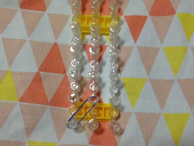 Paso 1: Coge tu telar y bandas Poner banda en telar como estaPaso 2: Luego coge sus granos y banda Entonces poner el elástico a través del talón como estaPaso 3: Luego de ponerlo en el telarPaso 4: Repita los pasos 1, 2 y 3 Hasta ' la longitud desead
