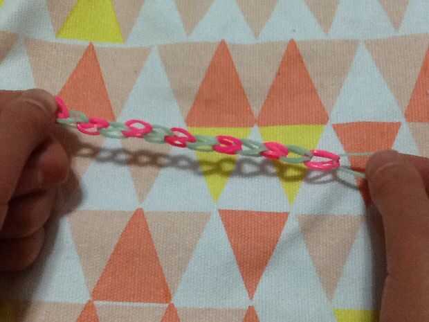 Repetición: Tomar una banda y ponerlo a través del pliegue (doble bucle) y luego doblar. Esto es lo que debe buscar como