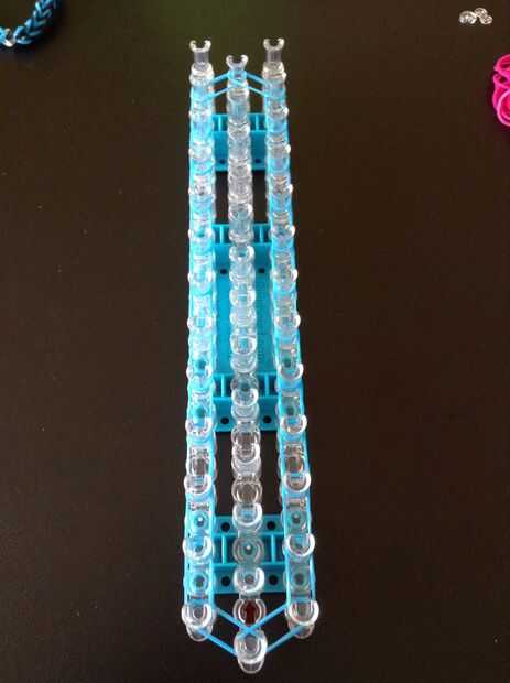 este es mi primer instructable diciéndote cómo hacer una pulsera de telar del arco iris triple.Paso 1: fuentes de Usted tendrá tablero de telar del arco iris, bandas y el gancho.Paso 2: Tres filas de bandas Poner tres filas en el telar como mostré ar