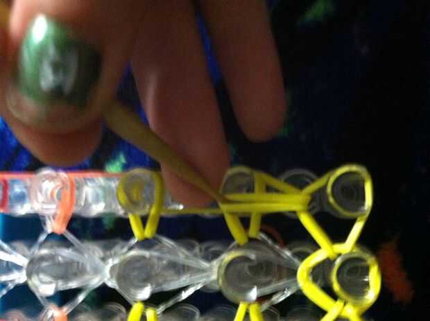 Paso 1: fuentes de Necesita un kit de inicio para el telar del arco iris y algunas elásticas.Paso 2: Colocar las bandas Iniciar colocando un color de borde y no empezar a poner encima de todo lo que tienes que hacer en los patrones.Paso 3: Colocar la