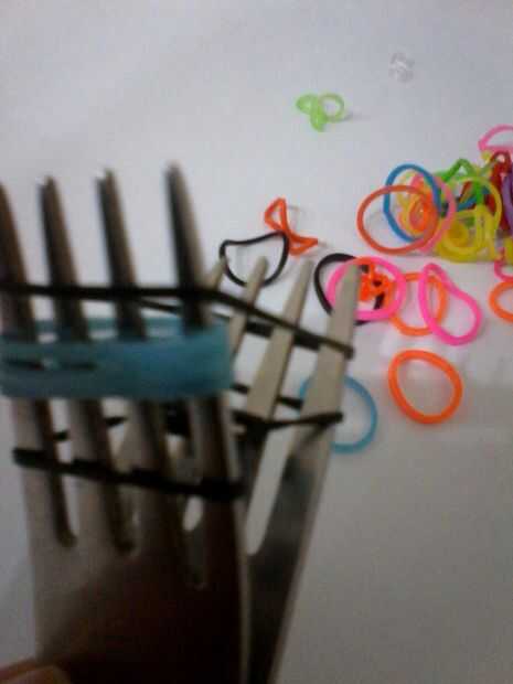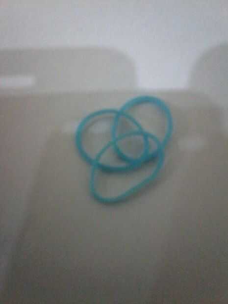 esto es una pulsera de nivel intermediaria, se puede hacer muy fácilmente.Fuentes: 3 colores de bandas en telar, telar del arco iris y un gancho.Paso 1: Empezar por colocar dos bandas blancas en forma de 'v' en el inicio del telar.Paso 2: El lugar un