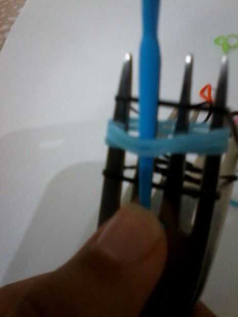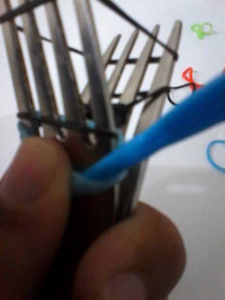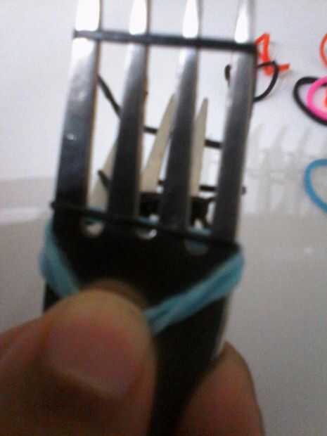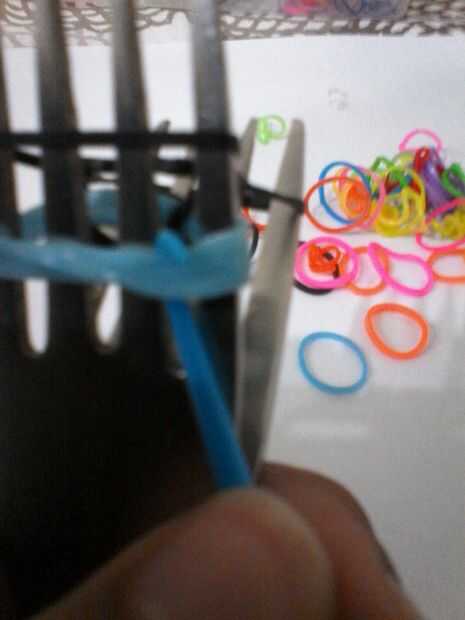 En el otro lado, a través hacia fuera la fabricación, usted nunca añadir bandas coloridas de las cadenas. Pase por encima la banda est parte inferior de la horquilla.