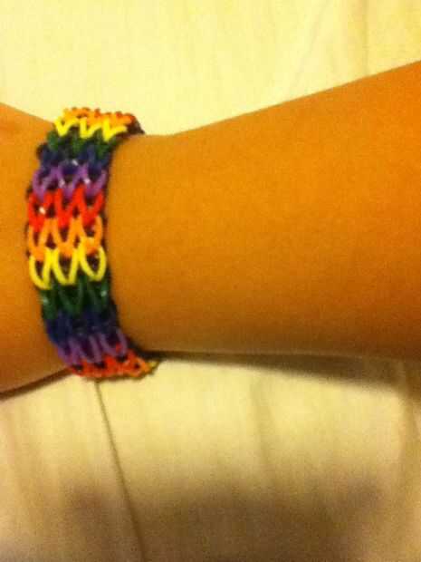 este es mi primer instructable diciéndote cómo hacer una pulsera de telar del arco iris triple.Paso 1: fuentes de Usted tendrá tablero de telar del arco iris, bandas y el gancho.Paso 2: Tres filas de bandas Poner tres filas en el telar como mostré ar