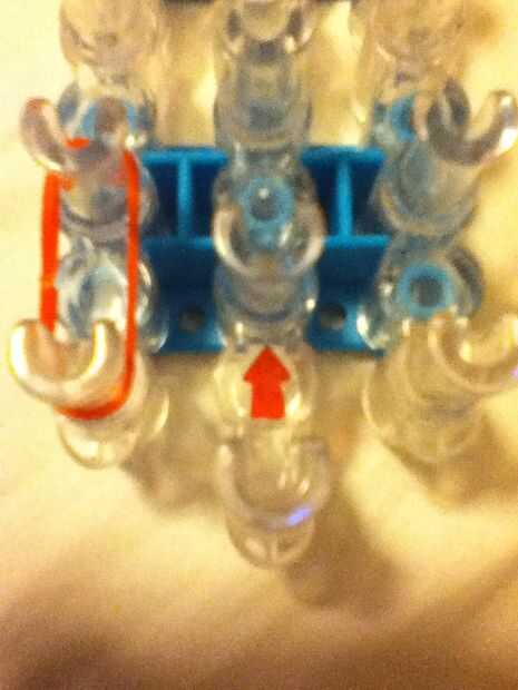necesita: bandas de un telar del arco iris, un gancho y blanco y negro.Paso 1: Colocación de las bandas Lugar sus bandas en un principio como el triple solo paren en la clavija 4 y mover la banda hacia la derecha y luego haces una línea recta en el c