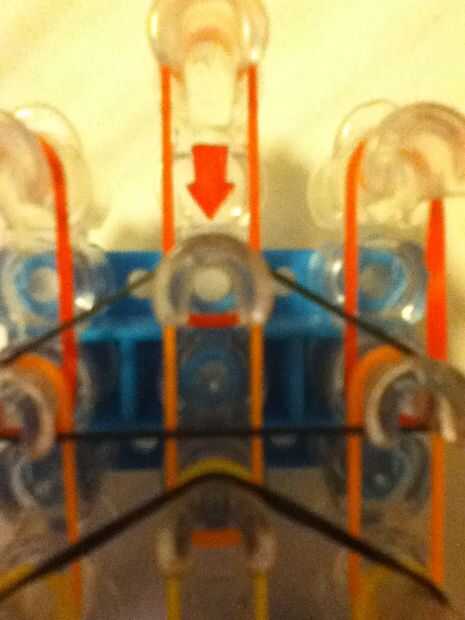 Asegúrese de que la flecha apunte hacia usted cuando comience el enganche. La banda de color de fondo y tire hasta la clavija directamente encima de él.