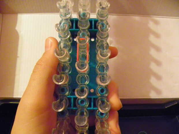 Paso 1: fuentes de Necesita un kit de inicio para el telar del arco iris y algunas elásticas.Paso 2: Colocar las bandas Iniciar colocando un color de borde y no empezar a poner encima de todo lo que tienes que hacer en los patrones.Paso 3: Colocar la