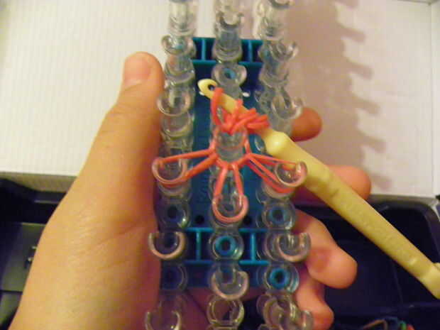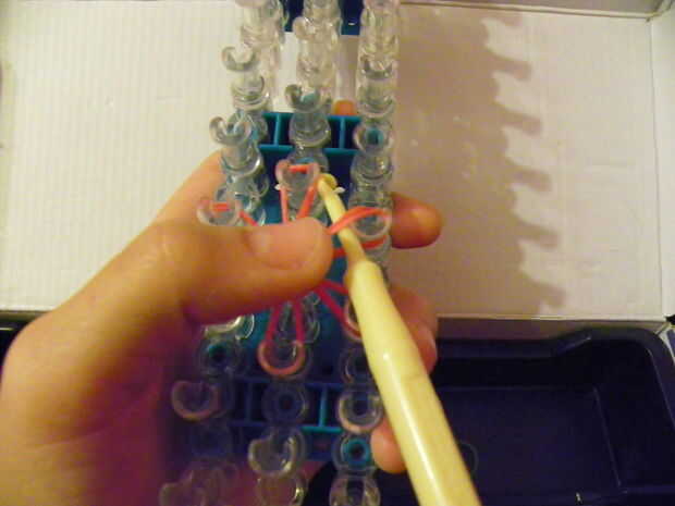 Paso 1: fuentes de Necesita un kit de inicio para el telar del arco iris y algunas elásticas.Paso 2: Colocar las bandas Iniciar colocando un color de borde y no empezar a poner encima de todo lo que tienes que hacer en los patrones.Paso 3: Colocar la