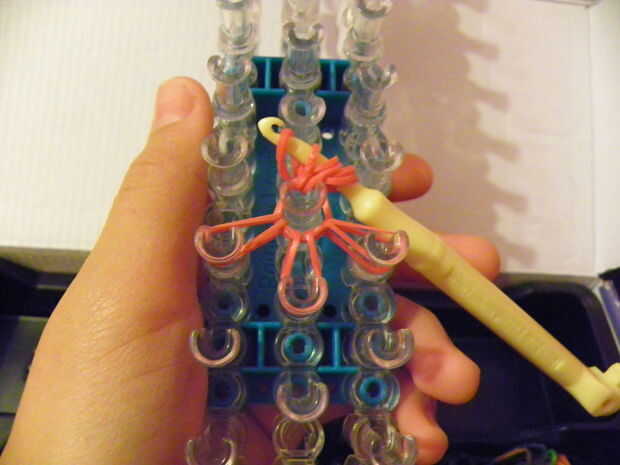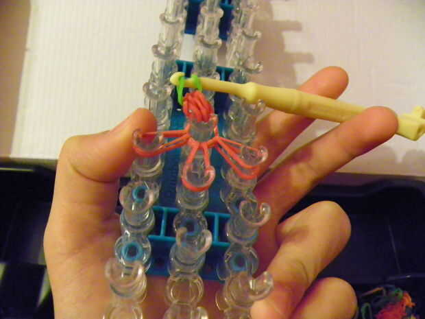 Paso 1: fuentes de Necesita un kit de inicio para el telar del arco iris y algunas elásticas.Paso 2: Colocar las bandas Iniciar colocando un color de borde y no empezar a poner encima de todo lo que tienes que hacer en los patrones.Paso 3: Colocar la